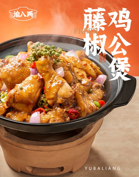 渝八两鸡公煲创立于2022年,选用农户直采散养鸡,西南风味小米辣,甄选东北圆粒米,精选川西青花椒,只为给食客呈现一碗浓香嫩滑、入味彻底的舌尖盛宴。